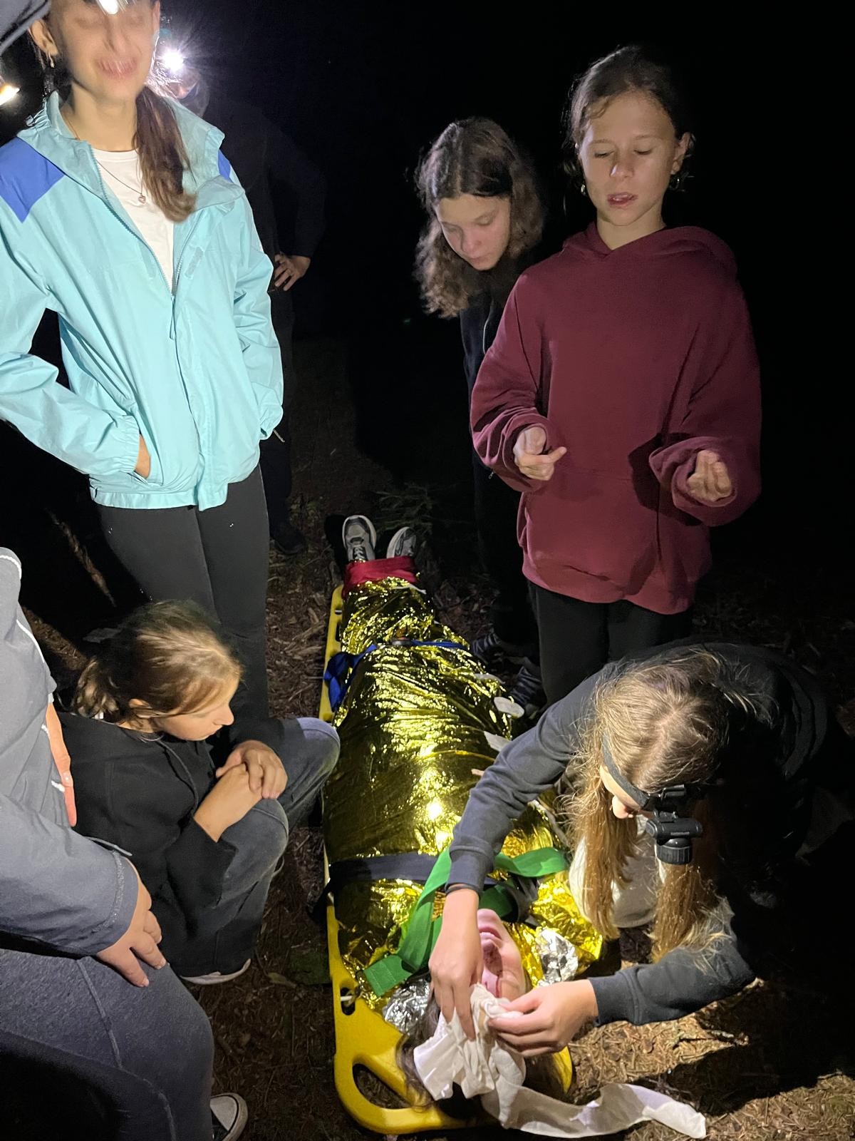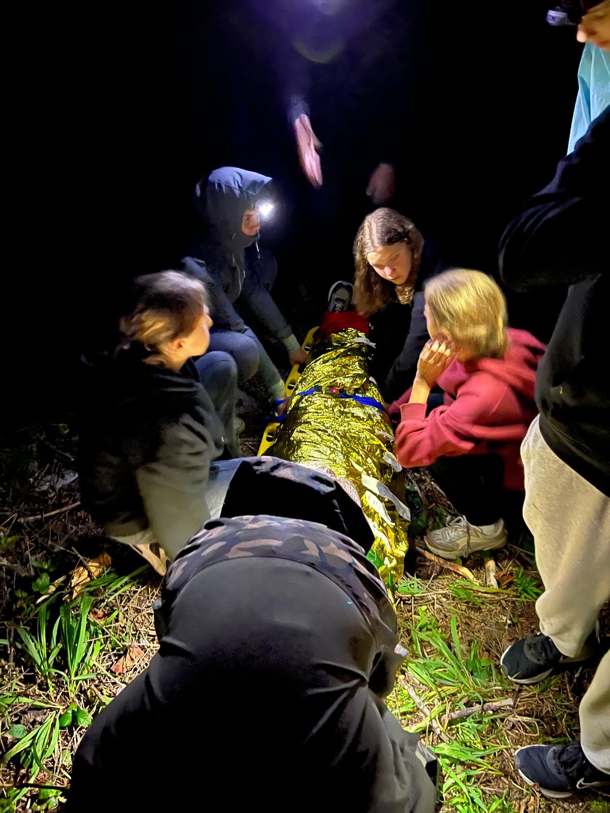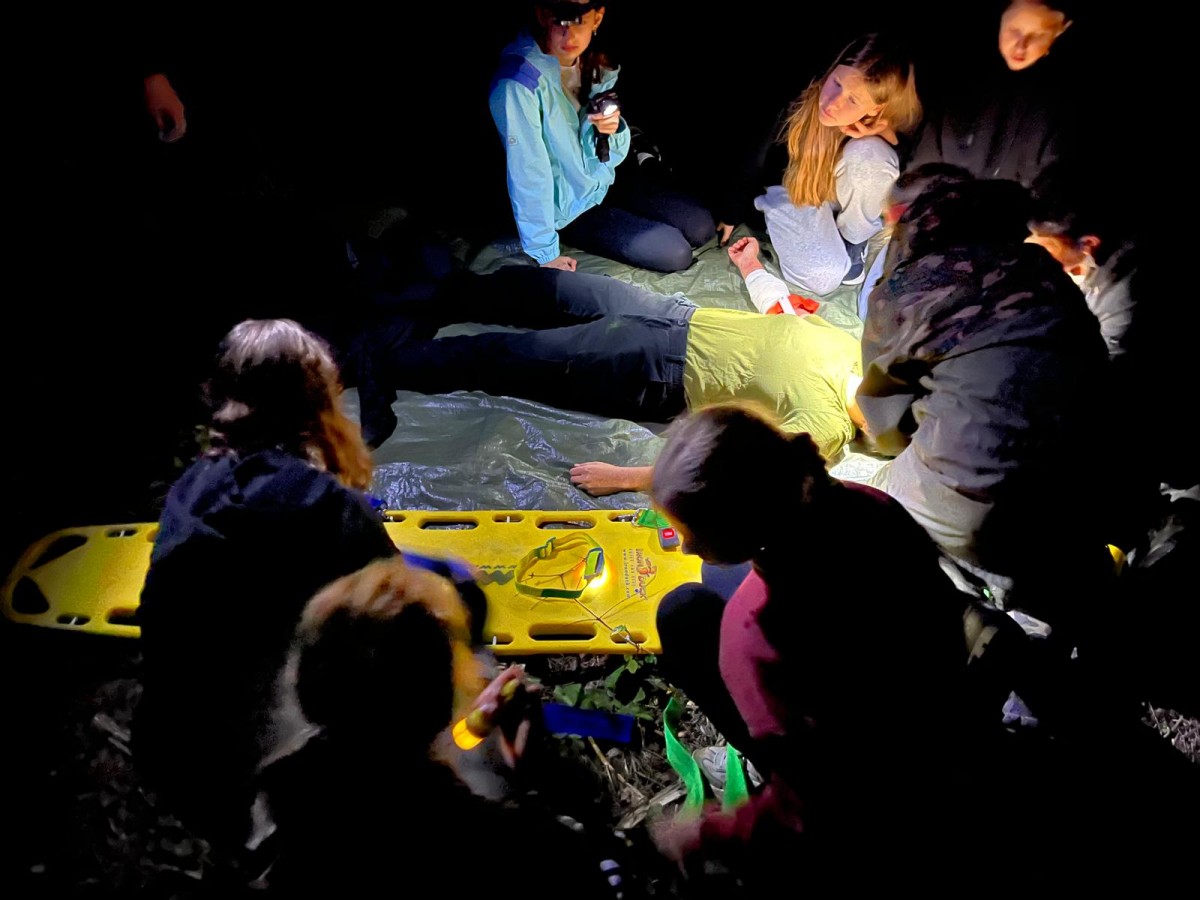 Ostatecznym sprawdzianem były nocne pozoracje w lesie. Dwie drużyny, wyposażone w sprzęt ratowniczy, wyruszyły w górzysty teren po zmroku, szukając poszkodowanych. Akcja w ograniczonym świetle, przy wymagającym terenie nie należała do najprostszych - nasi pozoranci nie ułatwiali zadania. Podczas ćwiczeń nie było czasu na zastanawianie się „czy dam radę?” - trzeba było działać, szybko reagować i ratować życie. Urazy, splątanie, brak współpracy poszkodowanego, nagłe pogorszenie stanu, hipotermia, ewakuacja - to tylko część wyzwań, z którymi zmierzyli się młodzi ratownicy. Skuteczność akcji zależała nie tylko od wiedzy, ale również od współpracy całego zespołu.
