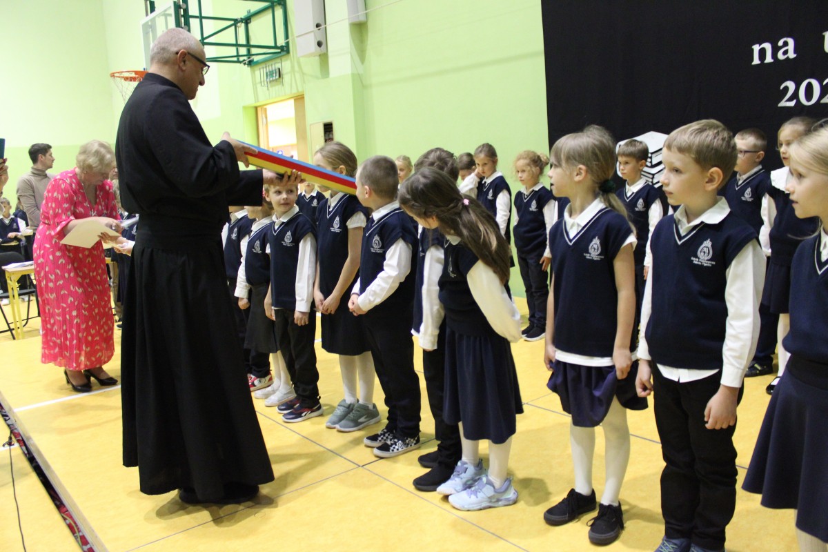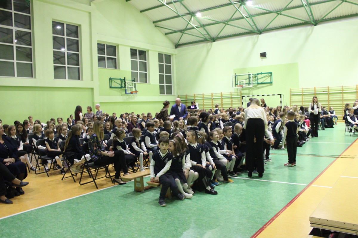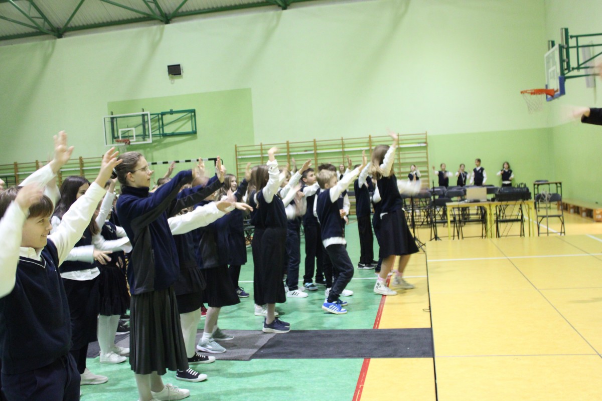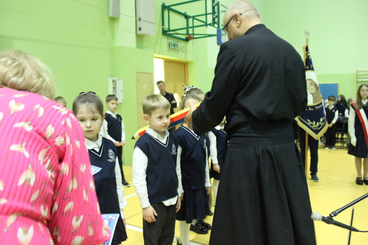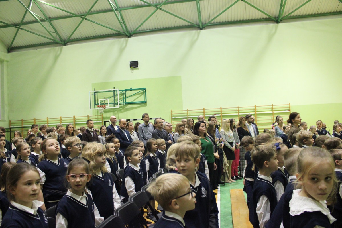 Mali uczniowie zaprezentowali piękny program, który spotkał się z entuzjastycznym przyjęciem całej społeczności szkolnej. Najważniejszym momentem było uroczyste pasowanie pierwszaków na uczniów, które symbolicznie wprowadziło ich w szkolną społeczność. Po zakończeniu części oficjalnej młodsze dzieci wróciły do swoich klas, natomiast uczniowie starszych klas wzięli udział w różnorodnych aktywnościach poświęconych postaci patrona szkoły. Odbyły się gry, zabawy, quizy i inne działania, które nie tylko bawiły, ale też przybliżały sylwetkę Stanisława Konarskiego i jego zasługi dla polskiej oświaty.