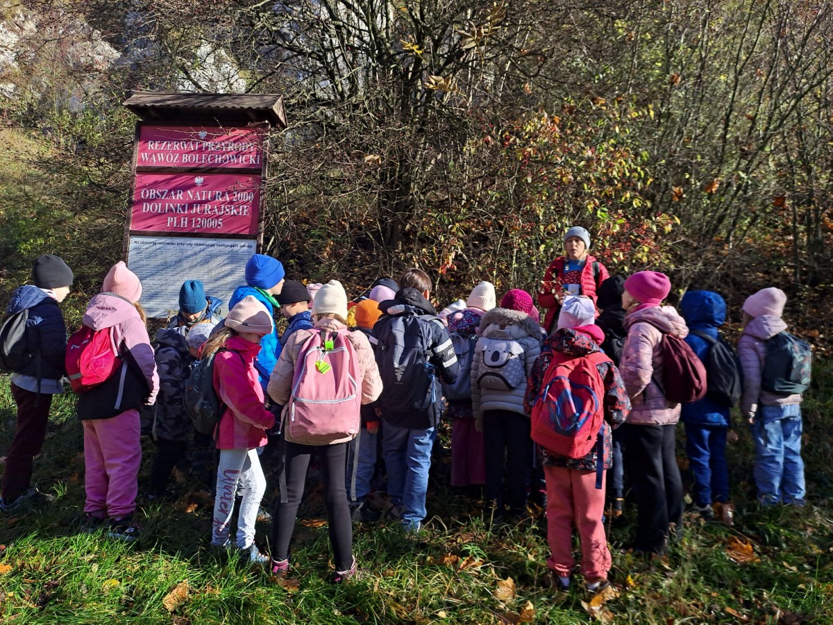 Odkrywaj, doświadczaj, bądź częścią natury! Poczuj, jak las uczy uważności i szacunku – do siebie, do innych i do miejsca, w którym żyjesz! Pod takim hasłem uczniowie klas drugich udali się w piękny jesienny dzień na wycieczkę do podkrakowskich Dolinek Bolechowickich, aby poznać tajniki życia w lesie.