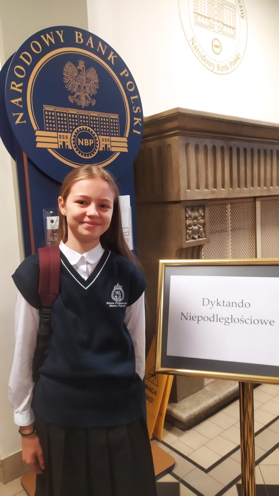 Z radością informujemy, że Wiktoria Kubik zajęła IV miejsce w Dyktandzie Niepodległościowym. Po przejściu etapu szkolnego, 29 października 2025 roku w gościnnych przestrzeniach Oddziału Okręgowego NBP w Krakowie, mierzyła się z tekstem o rotmistrzu Witoldzie Pileckim, naszpikowanym trudnościami ortograficznymi. Uczennica zdobyła 98 punktów na 100 możliwych.