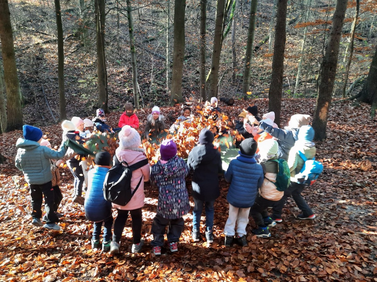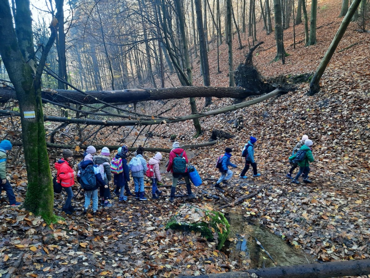 Jednym z zadań była przeprawa przez rzeczkę, która dostarczyła wiele emocji. Uczniowie, wspierani przez opiekunów i instruktorów, uczyli się, jak bezpiecznie pokonać naturalne przeszkody. Ćwiczenie to wymagało współpracy i odwagi, a jednocześnie było świetną zabawą. Kolejną atrakcją było rozpalanie ognia za pomocą krzesiwa. Instruktorzy pokazali, jak prawidłowo korzystać z krzemonki, a dzieci – pod okiem dorosłych – próbowały samodzielnie wzniecić płomień. To zadanie uczyło cierpliwości, precyzji oraz podstawowych umiejętności przetrwania w terenie. Warsztaty nie tylko dostarczyły wielu wrażeń, ale także pozwoliły uczniom lepiej zrozumieć przyrodę i znaczenie współpracy. Wycieczka do Doliny Bolechowickiej była pełna przygód i na długo pozostanie w pamięci całej klasy.