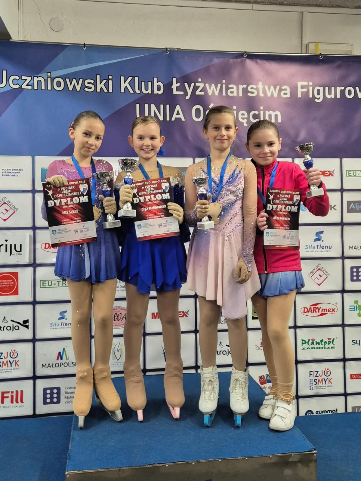 W listopadzie dziewczęta z klasy 3b brały udział w ogólnopolskich zawodach łyżwiarstwa figurowego o Puchar Ziemi Oświęcimskiej 2025. Na oświęcimskim lodowisku Olga Malinowska zajęła 2 miejsce, a Julia Noga 3 miejsce w klasie Wstępnej U9.