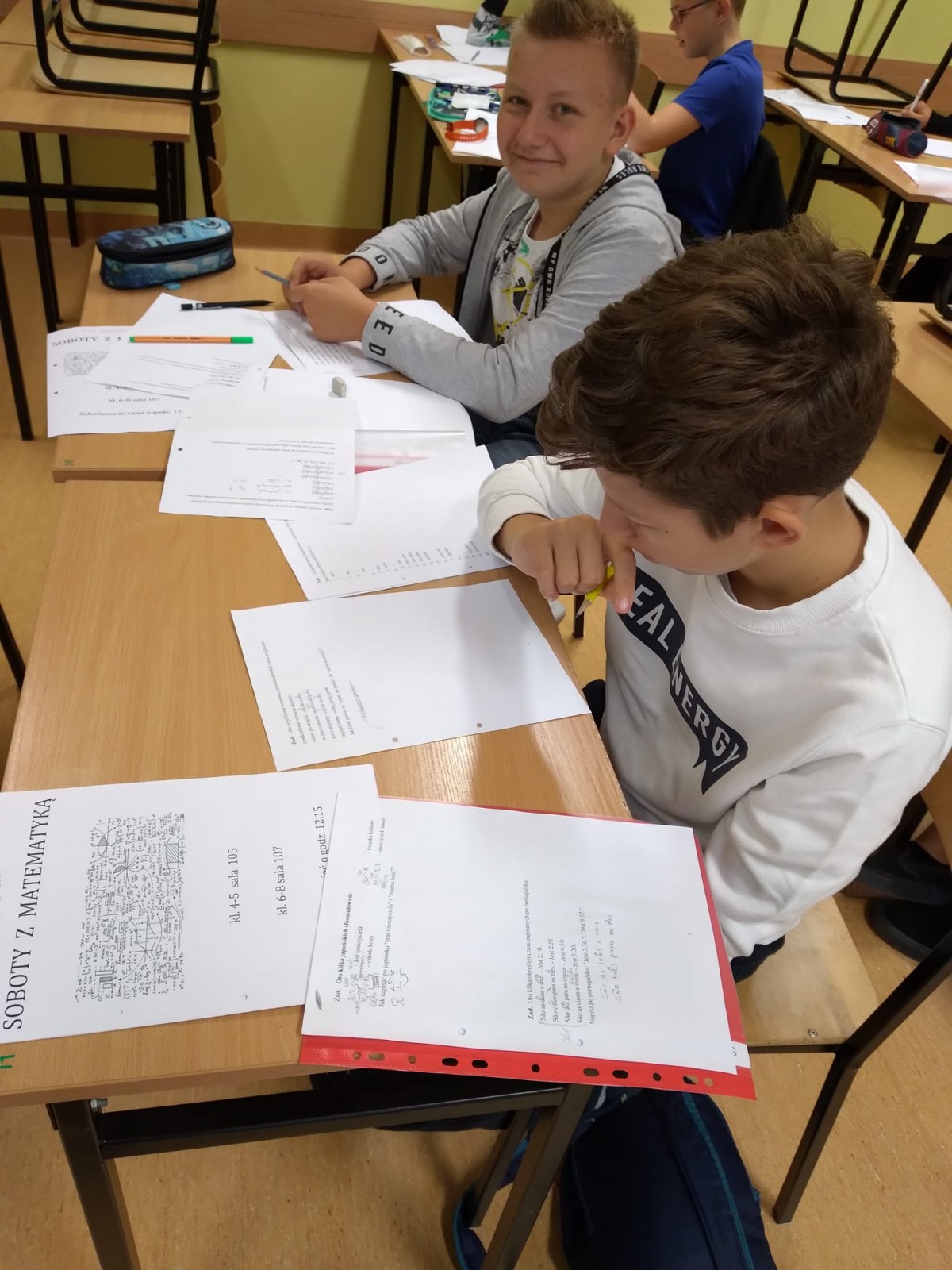 Soboty z matematyką. To projekt realizowany przez nauczycieli matematyki naszej szkoły. Dziś w młodszej grupie bawiliśmy się cechami podzielności, a starsi uczniowie poznawali tajniki lingwistyki matematycznej. Kolejne zajęcia już miesiąc.